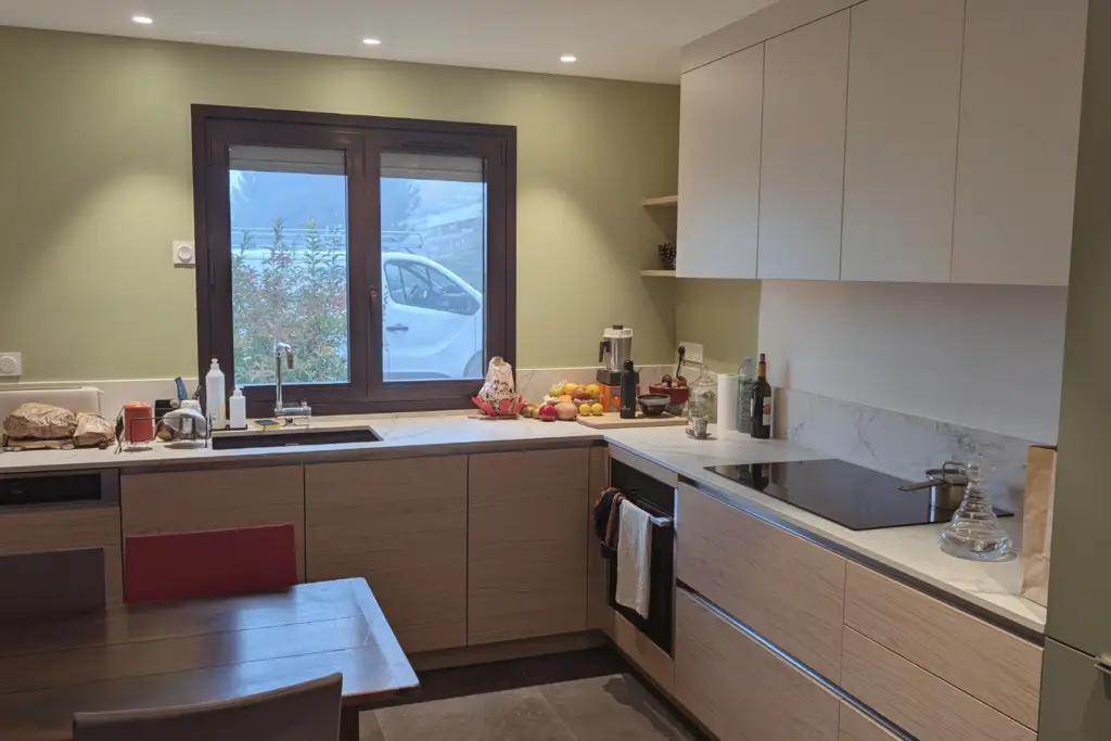 “La réflexion sur le projet était déjà bien avancée, les grandes lignes de l’aménagement définies et des premiers échanges avec un cuisiniste. Par contre, il nous fallait un pilote global pour trouver l’ensemble des artisans, avoir un regard neuf et complémentaire pour affiner notre projet, coordonner et suivre l’avancée des travaux pour obtenir le résultat attendu.”